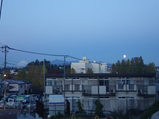 いつものコースを走っていると月と富士山のツーショット