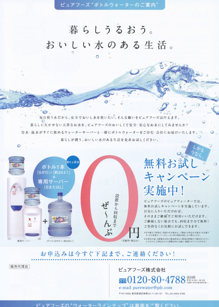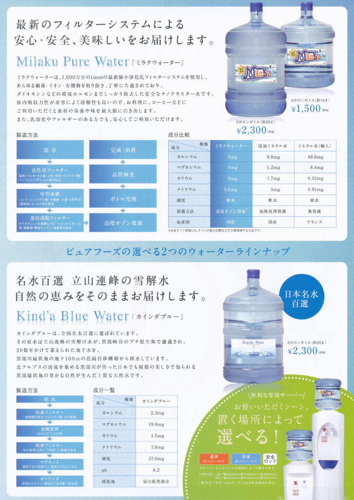 さて、この度我が社は「ピュアフーズ株式会社」と提携いたしミネラルウォーターの代理店に加盟致しました。