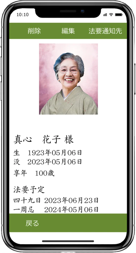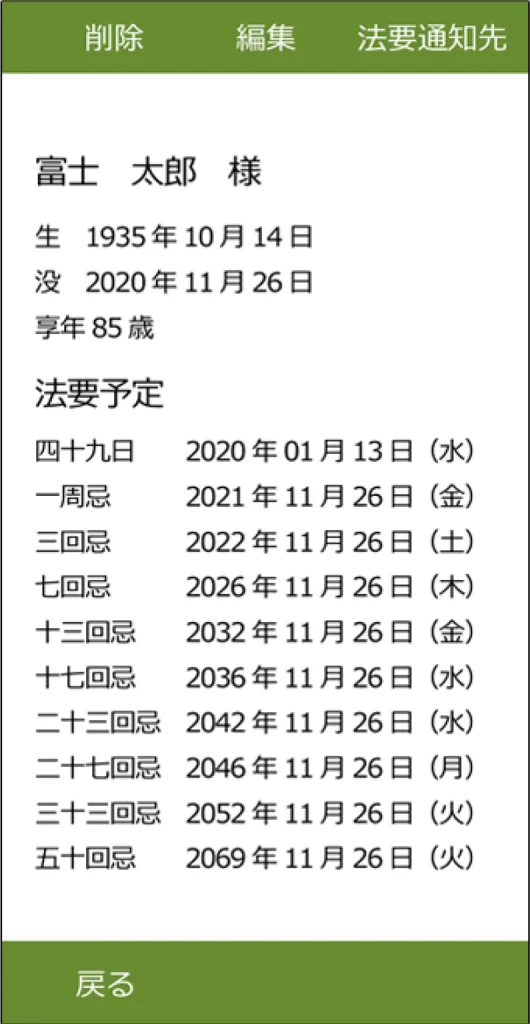 - 年忌法要日程の通知ができます。
